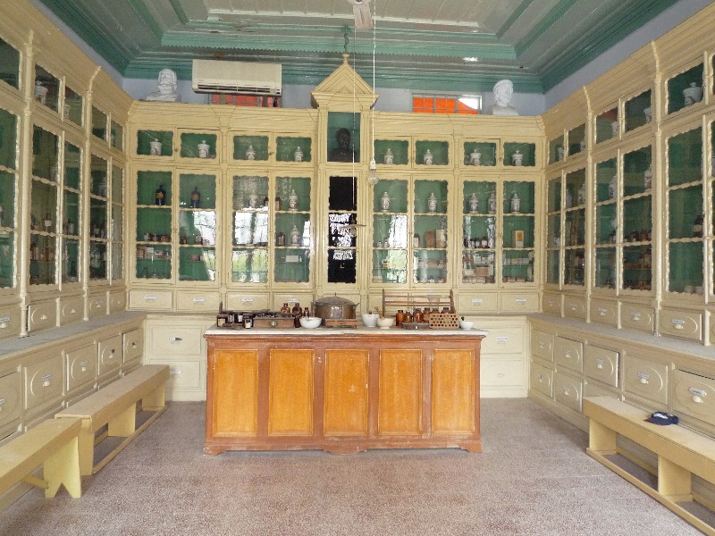 One afternoon we took a walk to the upper levels of the town, I saw a building which at first I thought might be an old hospital, The gate wasn't locked and after peeking through the glass on the door I could see it was an old apothocary/pharmacy