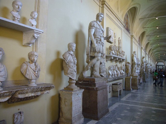 We started in the sculpture halls and strangely I was apalled! We were at one end of a long long corridor stacked floor to ceiling with unlabelled Greek and Roman statues packed shoulder to shoulder and gathering dust. We walked past 100 or 200 dusty statues then stopped to look at a couple, then walked past another hundred or so before stopping again. We entered a room full of beautiful and violent animal statues, I could not get it out of my mind that these were all historical works of art dating back a couple of millenia and that almost no one here at the Vatican will ever appreciate them because of the density of the display and the limited amount of time visitors get to spend here - as they march to the Sistine Chapel and St Peters. It seems to me that as treasures of the church (for they are certainly not religious artifacts) they could at least be parceled out to Catholic Churches around the globe in a series of traveling museums where they could be appreciated by and inspire a more interested audience.